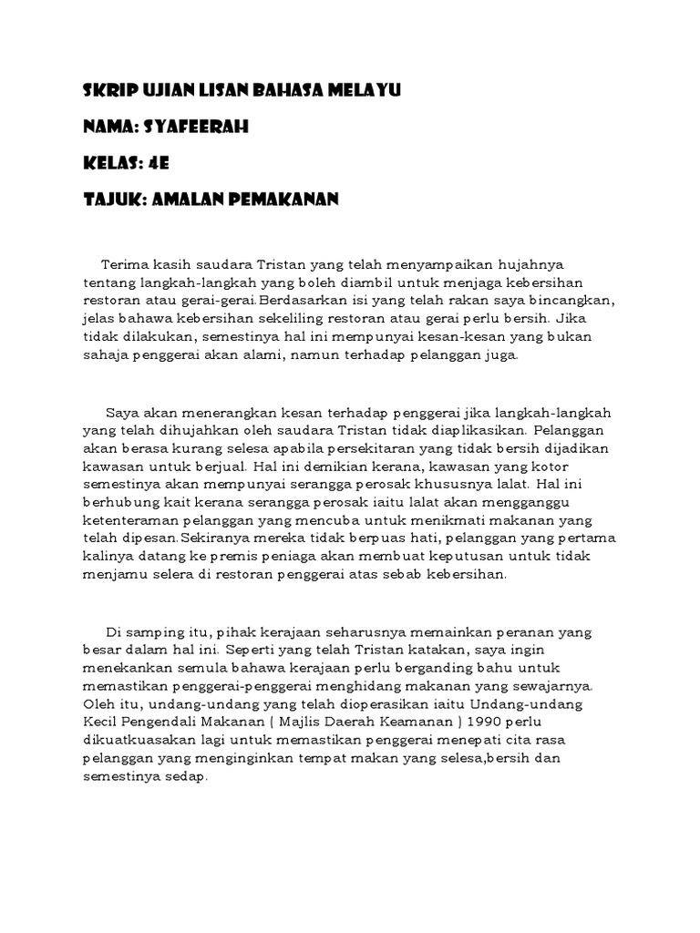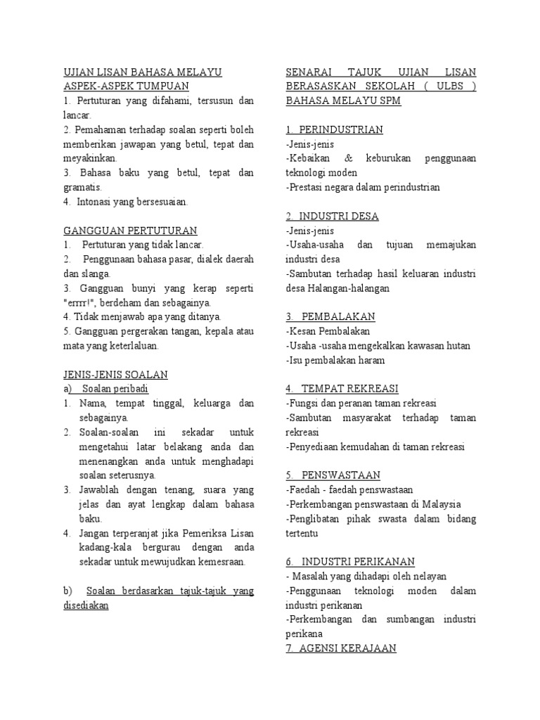 Skrip Ujian Lisan Bahasa Melayu Pdf